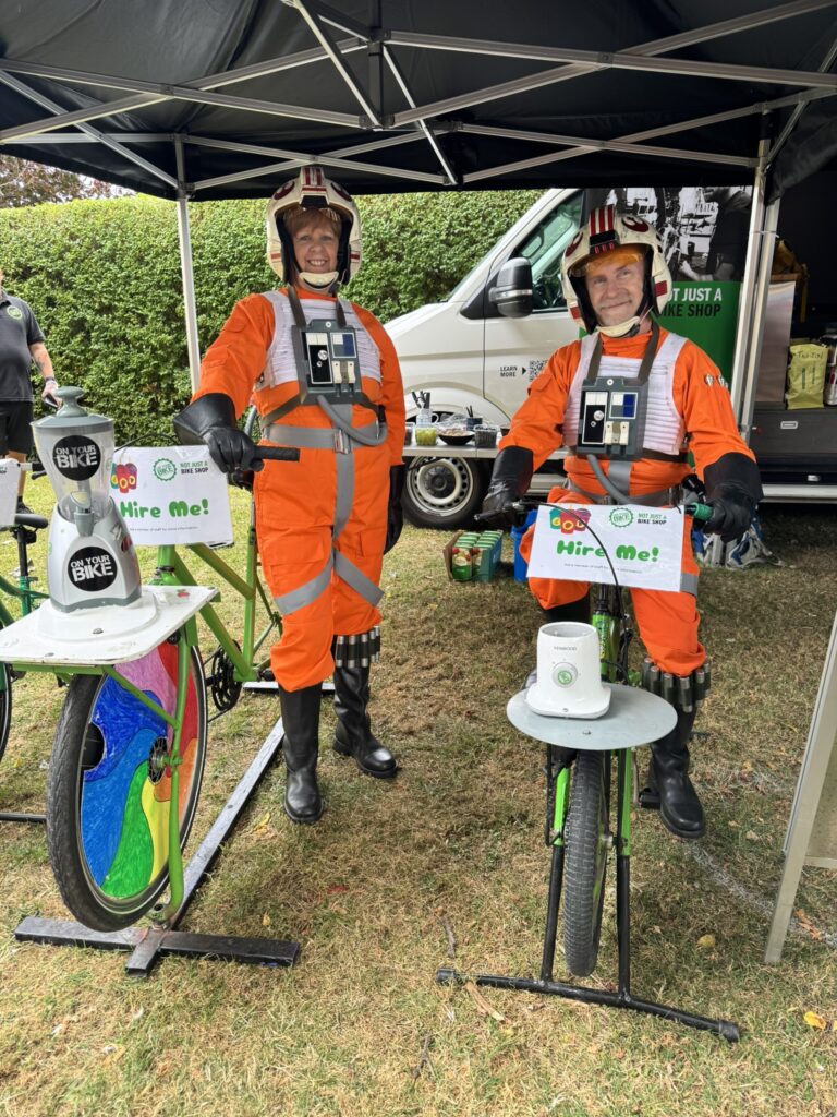 We raffled a couple of bikes and made many many Smoothies, with our unique smoothie bikes.